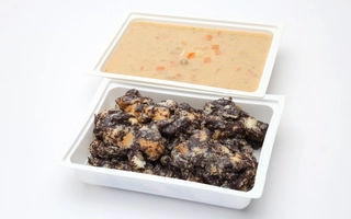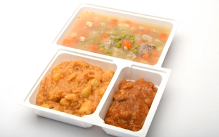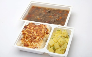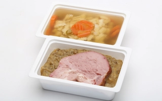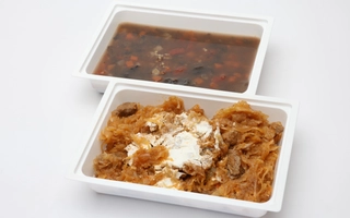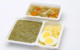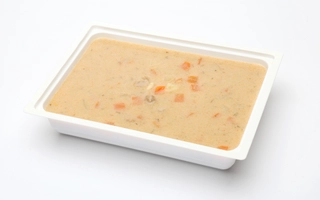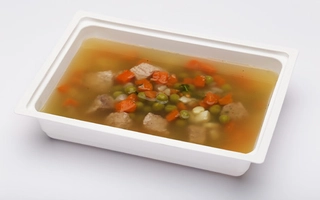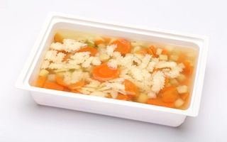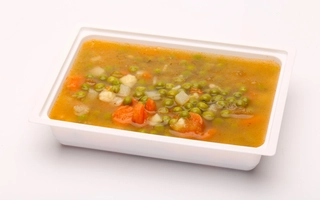 csontlé(37.68%), sárgarépa(20.94%), fehérrépa, zöldborsó, ZELLER*, eperlevél TÉSZTA (BÚZALISZT(GLUTÉN), Friss tyúkTOJÁS, Ivóvíz)*(5.01%), paradicsompüré, marhahúsleves alap (só, maltodextrin, ízfokozók: nátrium-glutamát, dinátrium-guanilát, dinátrium-inozinát; burgonyakeményítő, pálma zsír, 2, 8% marhahús kivonat, karamell szirup, aromák, vöröshagymalé koncentrátum, élesztőkivonat, fűszerek: kurkuma, petrezselyemgyökér, szerecsendió; napraforgó olaj), ételízesítő (Jódozott étkezési só (étkezési só, kálium-jodid), ízfokozó E621 és E631, cukor, karotta, pasztinák, vöröshagyma, petrezselyem, bors, színezőanyag: riboflavin))*, só, fekete bors