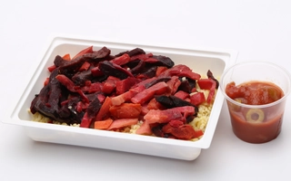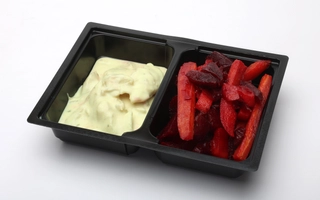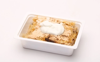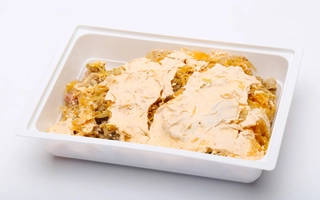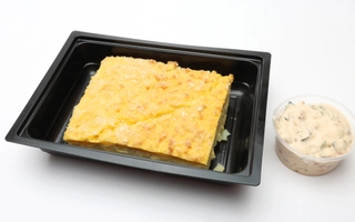 füstölt sertéstarja (sertéstarja csont nélkül 74%, ivóvíz, pác-só [étkezési só, tartósítószer: nátrium-nitrit], páckeverék [stabilizátorok (difoszfátok, trifoszfátok), állati fehérje (sertés), sűrítőanyagok (karragén, xantángumi), dextróz, étkezési só, fűszerkivonatok, savanyúságot szabályozó anyag: nátrium-acetátok, antioxidáns: nátrium- aszkorbát, aroma], burgonyakeményítő, pác-színezék [állati fehérje (sertés), színezék: kármin])(100.00%)