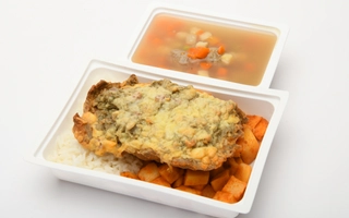 csirkemell(45.17%), alma(30.11%), FŐZŐKRÉM (ÍRÓ {TEJ} (70%), Pálmaolaj (15%), Víz, Módosított burgonyakeményítő, Emulgeálószer (poliszorbát 60), Sűrítőanyagok (metil-cellulóz, xantángumi), Savanyúságot szabályozó anyag (nátrium-citrátok)*, napraforgó étolaj, kristálycukor, sültcsirke fűszer (Jódozott étkezési só (étkezési só, kálium-jodid), paprika, kukorica keményítő, fokhagyma, bors, majoranna, rozmaring), kukorica keményítõ, citromlé 100%(0.63%), só, fahéj, szegfûszeg