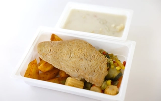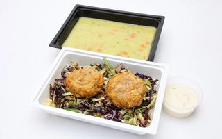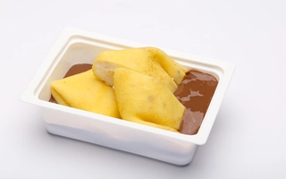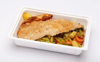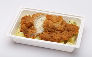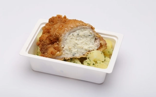 Medvehagymás krémsajttal töltött borda rántva: 117-130 g, petrezselymes burgonya: 144-160 g