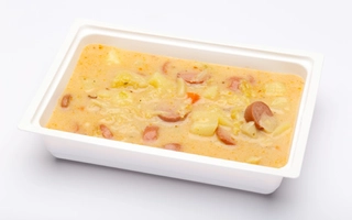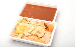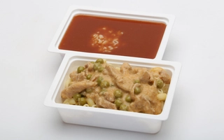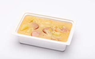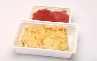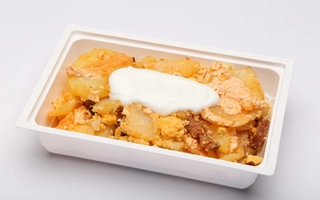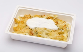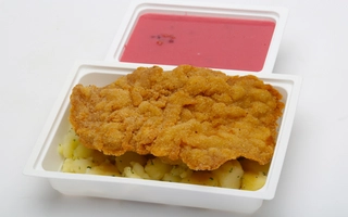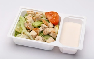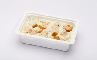 csirkemell(25.10%), burgonya, JOGHURT (TEJ)*(13.91%), CSEMEGE UBORKA(uborka, ivóvíz, ételezet 6, 63%, cukor, étkezési só, pácolt kapor (kapor, ecet), MUSTÁRMAG, szilárdító anyag: kalcium-klorid, aroma)*, alma(13.45%), MAJONÉZ (ivóvíz, finomított napraforgó olaj, cukor, módosított kukoricakeményítő, ételecet, MUSTÁR(ivóvíz, MUSTÁRMAG, ecetsav, cukor, étkezési só, fűszerek, kálium-szorbát) étkezési só, TOJÁSPOR, citromsav, kálium-szorbát, xantángumi, béta-karotin))*, petrezselyem, MUSTÁR (ivóvíz, MUSTÁRMAG, ecetsav, cukor, étkezési só, fűszerek, kálium-szorbát)*, uborka(2.69%), tárkony, padlizsán, só, kaliforniai paprika, édesítőszer (Eritritol, szukralóz), petrezselyem, őrölt fehér bors