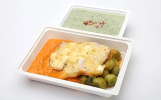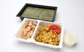 csirkemell(52.98%), spárga(20.44%), FŐZŐKRÉM (ÍRÓ {TEJ} (70%), Pálmaolaj (15%), Víz, Módosított burgonyakeményítő, Emulgeálószer (poliszorbát 60), Sűrítőanyagok (metil-cellulóz, xantángumi), Savanyúságot szabályozó anyag (nátrium-citrátok)*, TEJ*, póréhagyma, napraforgó étolaj, kukorica keményítõ, HOLLANDI MÁRTÁS(34%VAJPOR, módosított keményítők(kukorica, burgonya), 10%sovány TEJPOR, 7, 5% TOJÁSSÁRGÁJAPOR, jódozott só, keményítők(borsó, burgonya), só, pálmazsír, sűrítőanyag:E415, cukor, citromsav, fűszerek, élesztőkivonat, fehérbor kivonat, aromák (ÁRPÁVAL/GLUTÉN))*(1.14%), só, citromlé 100%, petrezselyem, ételízesítő (Jódozott étkezési só (étkezési só, kálium-jodid), ízfokozó E621 és E631, cukor, karotta, pasztinák, vöröshagyma, petrezselyem, bors, színezőanyag: riboflavin))*, petrezselyem, fekete bors