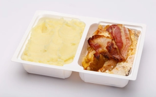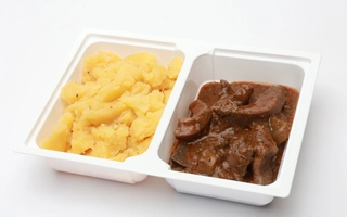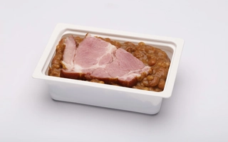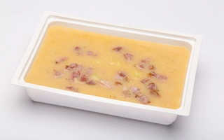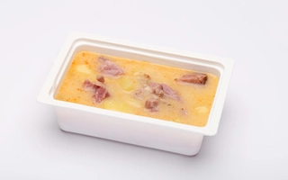 burgonya(48.83%), füstölt sertéstarja (sertéstarja csont nélkül 74%, ivóvíz, pác-só [étkezési só, tartósítószer: nátrium-nitrit], páckeverék [stabilizátorok (difoszfátok, trifoszfátok), állati fehérje (sertés), sűrítőanyagok (karragén, xantángumi), dextróz, étkezési só, fűszerkivonatok, savanyúságot szabályozó anyag: nátrium-acetátok, antioxidáns: nátrium- aszkorbát, aroma], burgonyakeményítő, pác-színezék [állati fehérje (sertés), színezék: kármin]), TEJFÖL (TEJ)*, vöröshagyma, füstölt sertéscsülök(6.96%), MUSTÁR (ivóvíz, MUSTÁRMAG, ecetsav, cukor, étkezési só, fűszerek, kálium-szorbát)*, BÚZALISZT(GLUTÉN)*, napraforgó étolaj, ételízesítő (Jódozott étkezési só (étkezési só, kálium-jodid), ízfokozó E621 és E631, cukor, karotta, pasztinák, vöröshagyma, petrezselyem, bors, színezőanyag: riboflavin))*, só, fûszerpaprika, fokhagyma, fekete bors, babérlevél