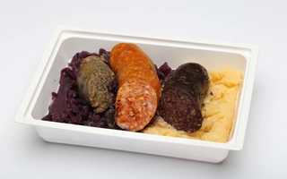 marhahús(53.15%), sárgarépa, kristálycukor, TEJFÖL (TEJ)*, fehérrépa, napraforgó étolaj, BÚZALISZT(GLUTÉN)*, alma, ZELLER*, MUSTÁR (ivóvíz, MUSTÁRMAG, ecetsav, cukor, étkezési só, fűszerek, kálium-szorbát)*, FŐZŐKRÉM (ÍRÓ {TEJ} (70%), Pálmaolaj (15%), Víz, Módosított burgonyakeményítő, Emulgeálószer (poliszorbát 60), Sűrítőanyagok (metil-cellulóz, xantángumi), Savanyúságot szabályozó anyag (nátrium-citrátok)*, FEHÉRBOR (SZULFIT)*, citrom, marhahúsleves alap (só, maltodextrin, ízfokozók: nátrium-glutamát, dinátrium-guanilát, dinátrium-inozinát; burgonyakeményítő, pálma zsír, 2, 8% marhahús kivonat, karamell szirup, aromák, vöröshagymalé koncentrátum, élesztőkivonat, fűszerek: kurkuma, petrezselyemgyökér, szerecsendió; napraforgó olaj), só, citromlé 100%, fekete bors, kakukkfű, babérlevél