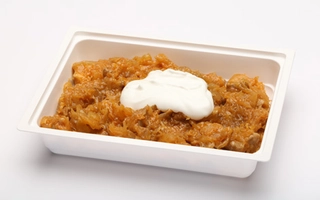 TEJFÖL (TEJ)*, sárgarépa, burgonya, zöldborsó, alma, MAJONÉZ (ivóvíz, finomított napraforgó olaj, cukor, módosított kukoricakeményítő, ételecet, MUSTÁR(ivóvíz, MUSTÁRMAG, ecetsav, cukor, étkezési só, fűszerek, kálium-szorbát) étkezési só, TOJÁSPOR, citromsav, kálium-szorbát, xantángumi, béta-karotin))*, JOGHURT (TEJ)*, gépsonka (Sertéshús 68%, ivóvíz, keményítő, étkezési só, sertés fehérje, stabilizátor:difoszfátok, kálium-klorid, szárított glükóz szirup, dextróz, zselésítő:karragén, növényi rostok, antioxidáns: nátrium-aszkorbát, élesztőkivonat, füst aroma, tartósítószer:nátrium-nitrit)(5.28%), petrezselyem, tormakrém(4.23%), FŐZŐKRÉM (ÍRÓ {TEJ} (70%), Pálmaolaj (15%), Víz, Módosított burgonyakeményítő, Emulgeálószer (poliszorbát 60), Sűrítőanyagok (metil-cellulóz, xantángumi), Savanyúságot szabályozó anyag (nátrium-citrátok)*, TÖNKÖLYLISZT (GLUTÉN)*, margarin (pálmaolaj, repceolaj, kókuszolaj, víz, emulgeáloszerek), CSEMEGE UBORKA(uborka, ivóvíz, ételecet 6, 63%, cukor, étkezési só, pácolt kapor (kapor, ecet), MUSTÁRMAG, szilárdító anyag: kalcium-klorid, aroma)*, BÚZALISZT(GLUTÉN)*, só, TEJ*, citromlé 100%, zselatin, édesítőszer (Eritritol, szukralóz), kaliforniai paprika, szódabikarbóna