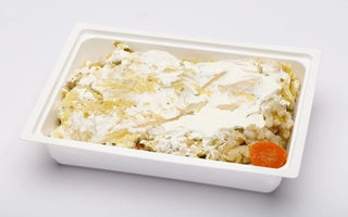Kalória: 479 kcal, Fehérje: 19 g, Zsír: 27 g, Telített: 8 g, Szénhidrát: 38 g, Cukor: 7 g, Só: 3.80 g,