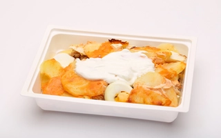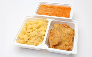Paradicsomos burgonyafőzelék, jércés stefánia vagdaltF2