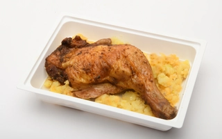 Pirított csirkecomb, póréhagymás törtburgonya E5