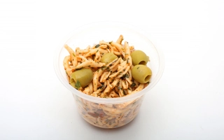 bab(24.08%), füstölt sertéstarja (Sertéstarja 85%, ivóvíz, étkezési só, módosított keményítő: E1422, stabilizátor: E451, burgonyakeményítő, maltodextrin, antioxidáns: E316, állati fehérje (sertés), aromák, dextróz, tartósítószer: E250), füstölt sertéscsülök (sertés hátsó csülök, ivóvíz, étkezési só, tartósítószer (E250))(14.45%), TEJFÖL (TEJ)*, sárgarépa, parasztkolbász (sertéshús,étkezési só, dextróz, fűszerek, antioxidáns:nátrium-aszkorbát, tartósítószer:nátrium-nitrit, starterkultúra)(9.63%), vöröshagyma, fehérrépa, BÚZALISZT(GLUTÉN)*, TARHONYA (Tésztaipari búzaliszt (GLUTÉN), tyúkTOJÁS(20%))*, só, ételízesítő (Jódozott étkezési só (étkezési só, kálium-jodid), ízfokozó E621 és E631, cukor, karotta, pasztinák, vöröshagyma, petrezselyem, bors, színezőanyag: riboflavin))*, fokhagyma, füstölt húsízesítő (Étkezési só, keményítők, füstölt szalonna 4%, főtt-szárított sertéshús 4%, pirított vöröshagymapor, fokhagymapor, aromák, maltodextrin, cukor, növényi zsír, élesztőkivonat, zöldség- és gyümölcslé koncentrátum (vöröshagyma, alma, sárgarépa), fűszerek (babérlevél, fűszerpaprika, lestyán, bors), színezék (karamell-ammóniás), füstaroma, füstölt szalonna kivonat, növényi olaj, antioxidáns), fûszerpaprika, õrölt kömény, babérlevél
