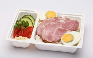 TOJÁS*(11.03%), füstölt sertéstarja (Sertéstarja 85%, ivóvíz, étkezési só, módosított keményítő: E1422, stabilizátor: E451, burgonyakeményítő, maltodextrin, antioxidáns: E316, állati fehérje (sertés), aromák, dextróz, tartósítószer: E250)(17.64%), TEJFÖL (TEJ)*, MAJONÉZ (ivóvíz, finomított napraforgó olaj, cukor, módosított kukoricakeményítő, ételecet, MUSTÁR(ivóvíz, MUSTÁRMAG, ecetsav, cukor, étkezési só, fűszerek, kálium-szorbát) étkezési só, TOJÁSPOR, citromsav, kálium-szorbát, xantángumi, béta-karotin))*, sárgarépa, burgonya, zöldborsó, alma, tormakrém(6.62%), paprika, paradicsom(4.41%), porcukor, petrezselyem(0.28%), uborka, CSEMEGE UBORKA(uborka, ivóvíz, ételecet 6, 63%, cukor, étkezési só, pácolt kapor (kapor, ecet), MUSTÁRMAG, szilárdító anyag: kalcium-klorid, aroma)*, só, MUSTÁR (ivóvíz, MUSTÁRMAG, ecetsav, cukor, étkezési só, fűszerek, kálium-szorbát)*, citromlé 100%, szódabikarbóna