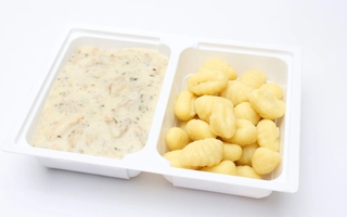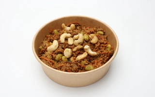 Kalória: 393 kcal, Fehérje: 7 g, Zsír: 28 g, Telített: 12 g, Szénhidrát: 39 g, Cukor: 3 g, Só: 0.23 g,