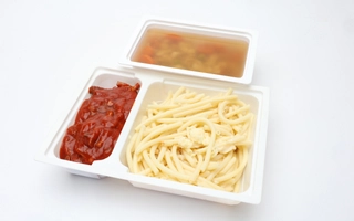 csontlé(37.68%), sárgarépa(20.94%), fehérrépa, zöldborsó, ZELLER*, eperlevél TÉSZTA (BÚZALISZT(GLUTÉN), Friss tyúkTOJÁS, Ivóvíz)*(5.01%), paradicsompüré, marhahúsleves alap (só, maltodextrin, ízfokozók: nátrium-glutamát, dinátrium-guanilát, dinátrium-inozinát; burgonyakeményítő, pálma zsír, 2, 8% marhahús kivonat, karamell szirup, aromák, vöröshagymalé koncentrátum, élesztőkivonat, fűszerek: kurkuma, petrezselyemgyökér, szerecsendió; napraforgó olaj), ételízesítő (Jódozott étkezési só (étkezési só, kálium-jodid), ízfokozó E621 és E631, cukor, karotta, pasztinák, vöröshagyma, petrezselyem, bors, színezőanyag: riboflavin))*, só, fekete bors