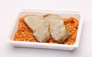Fokhagymás-rozmaringos tarja: 99-110 g, paradicsomos, fehérbabos ragu: 342-380 g